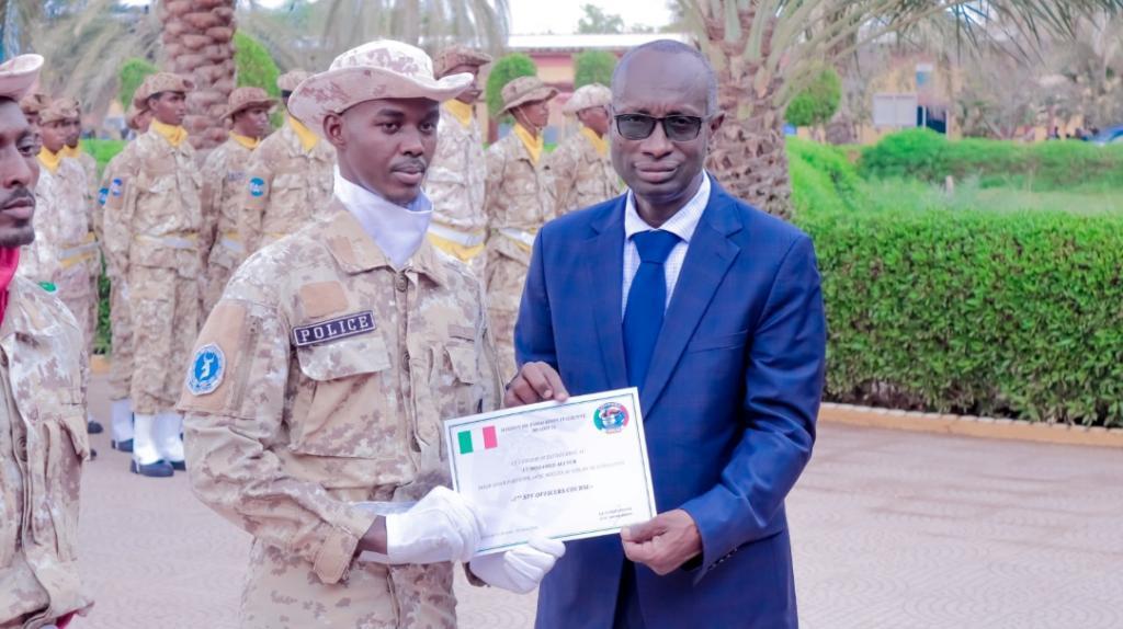 Le moment fort de la cérémonie a été la démonstration des compétences acquises par les stagiaires, à travers des exercices tactiques et des simulations d’intervention, illustrant leur préparation opérationnelle et leur cohésion. La remise des attestations aux nouveaux policiers, ainsi que des certificats de mérite aux carabiniers italiens, a clôturé l’événement.