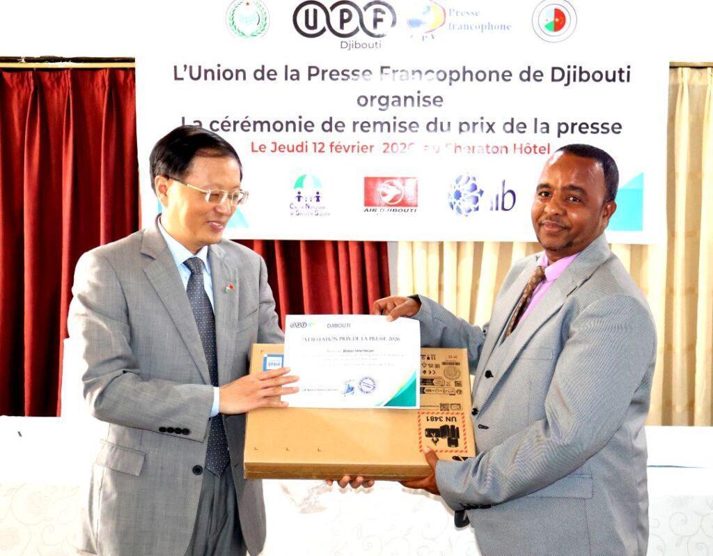 Africa-Press – Djibouti. L’Union de la Presse Francophone de Djibouti (UPF Djibouti) a organisé jeudi dernier au Sheraton hôtel, la cérémonie officielle de remise du Prix de la presse 2026, marquant la dixième édition de cette distinction devenue, au fil des années, un rendez-vous majeur du paysage médiatique national. L’événement s’est déroulé en présence du ministre de la Communication, chargé des Postes et des Télécommunications, M. Radwan Abdillahi, de Son Excellence l’Ambassadeur de la République populaire de Chine à Djibouti M.Hu Bin , ainsi que de nombreux professionnels des médias, partenaires institutionnels et invités de marque.
