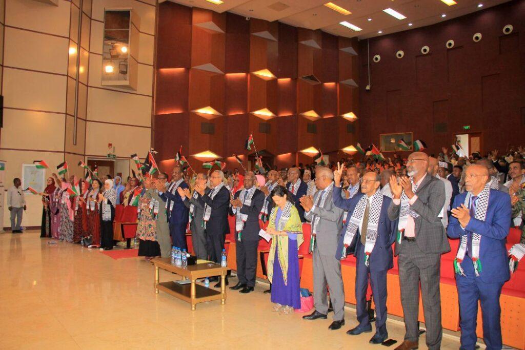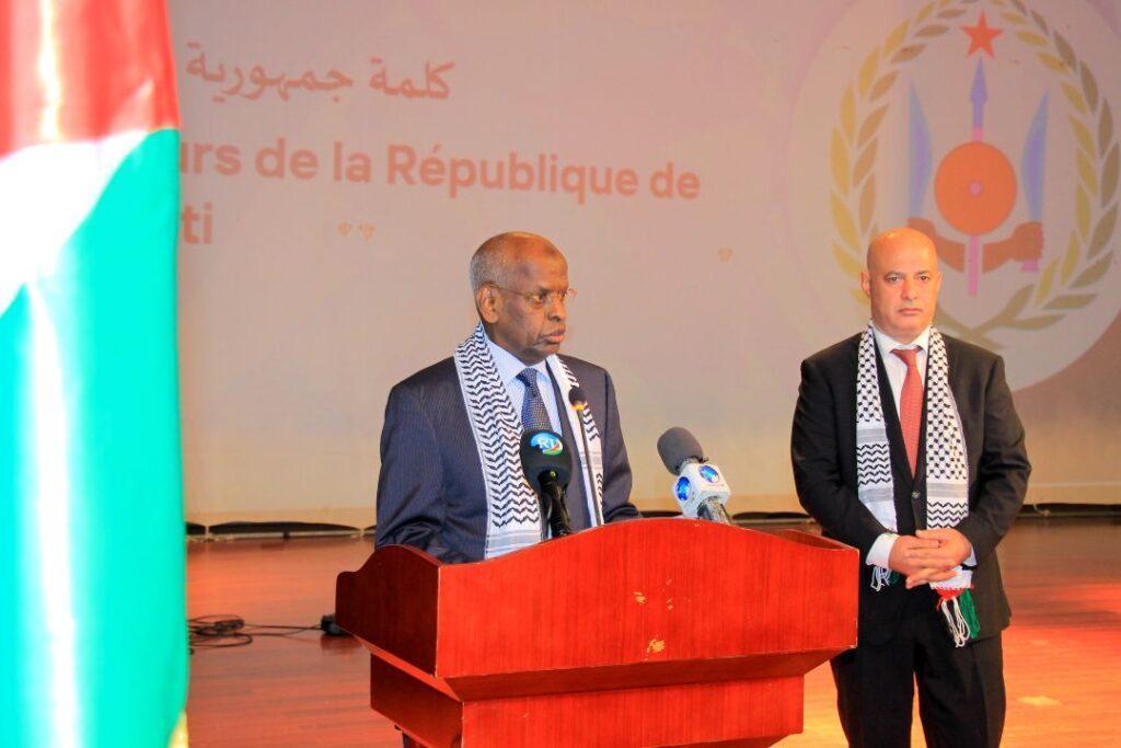 Autour du Premier ministre, l’assistance comptait l’ambassadeur de l’État de Palestine, Dr Rowaid Adel Abu Amsha, le président de l’Assemblée nationale, plusieurs membres du gouvernement, des parlementaires, ainsi que des représentants d’organisations internationales et des responsables militaires et civils. Une composition qui témoigne du caractère transversal, institutionnel et profondément enraciné de la solidarité djiboutienne envers la Palestine.