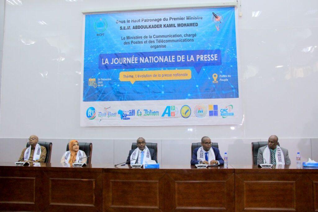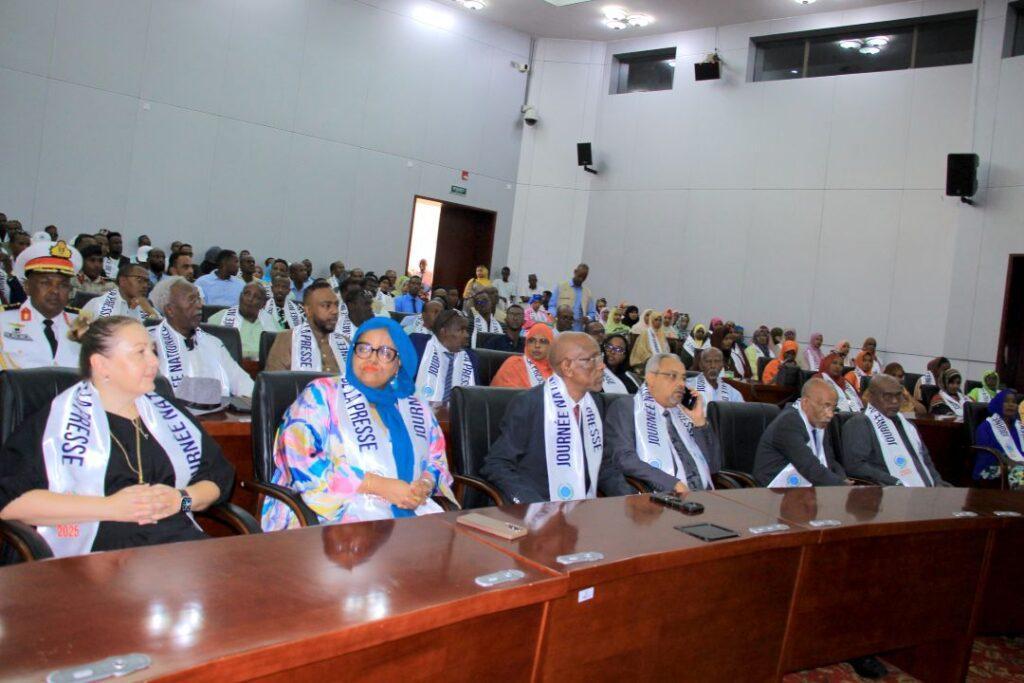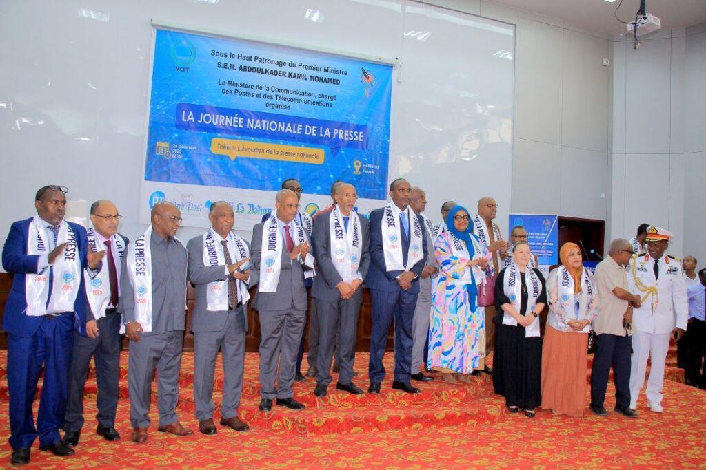 Placée sous le thème « L’évolution de la presse nationale », cette journée nationale de la presse a réuni un large éventail de personnalités et d’acteurs du secteur médiatique, plusieurs ministres du gouvernement, les représentants de corps diplomatiques et consulaires, des représentants de systèmes des Nations-Unies, le directeur de la communication et des médias M. Ibrahim Miyir Ali, le président de la Commission Nationale de la Communication M. Ali Mohamad Dimbio, le directeur de la publication du Quotidien « La Nation », M. Kenedid Ibrahim Houssein, le directeur général de la RTD, M. Aden Abdi Djama, les responsables des différents organes médiatiques du pays , l’ensemble des professionnels de la presse national composé des journalistes, photographes, cameraman, techniciens ainsi que des personnalités du monde des médias ont pris part à la cérémonie.