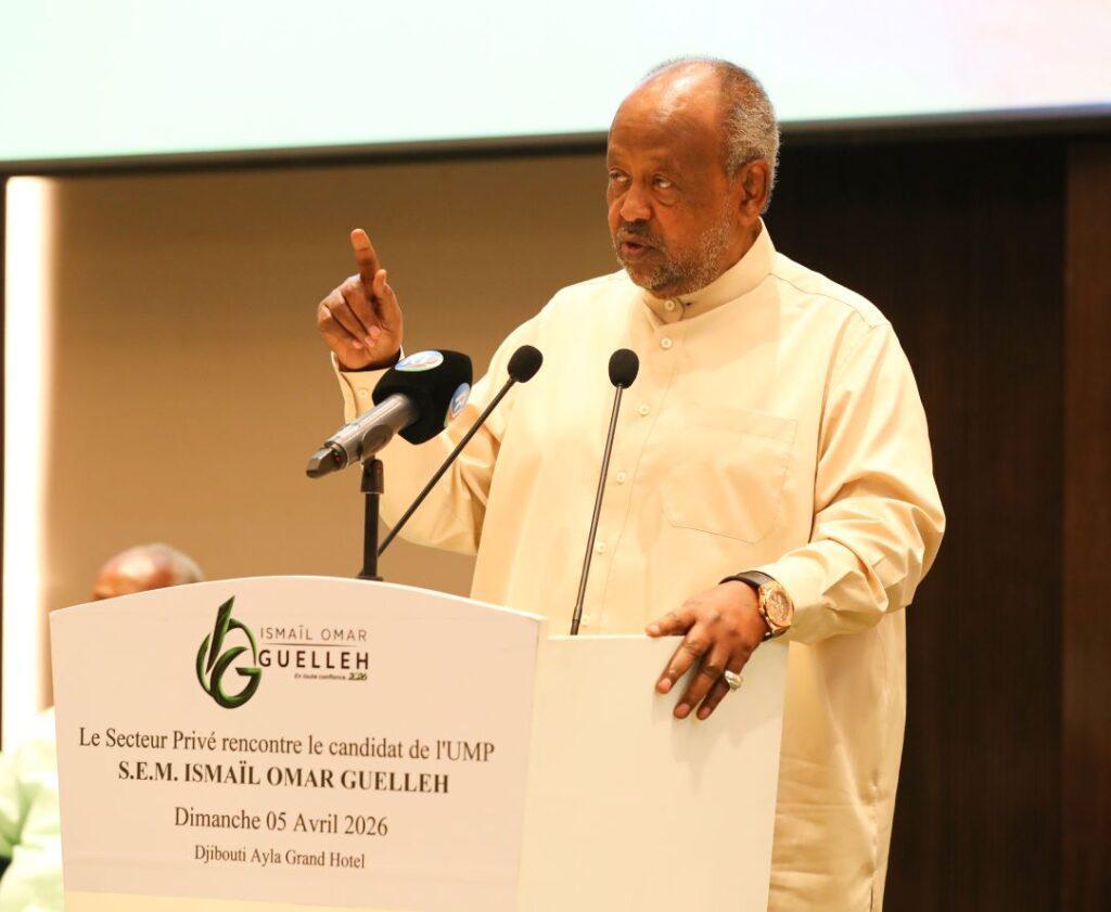 Africa-Press – Djibouti. À quelques jours d’un scrutin présidentiel décisif, le président de la République et candidat de l’Union pour la Majorité Présidentielle (UMP), Ismaïl Omar Guelleh, a choisi de placer l’économie au centre de son message politique. Réuni hier dimanche avec les principaux acteurs du secteur privé à Ayla Grand Hotel, le chef de l’État a multiplié les signaux en faveur d’un partenariat renforcé entre les pouvoirs publics et les opérateurs économiques, dans un contexte marqué à la fois par des ambitions nationales de croissance et des incertitudes régionales persistantes.