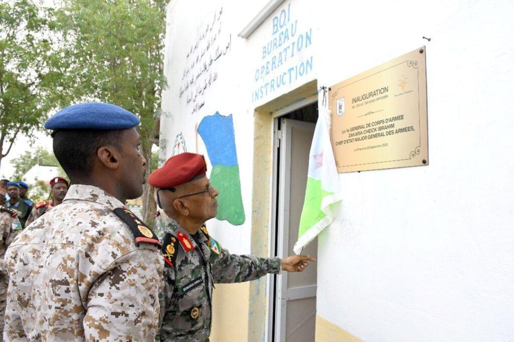 Africa-Press – Djibouti. L’école militaire ‘‘Président Hassan Gouled Aptidon’’, sise dans la sous-préfecture de Holl-Holl, dans la région d’Ali Sabieh, a abrité le dimanche 28 septembre dernier, la cérémonie d’inauguration de la toute première École des Sous-officiers des Forces armées djiboutiennes. Placé sous le haut patronage du Chef d’Etat-major Général des Armées (CEMGA), le Général de corps d’armée Zakaria Cheikh Ibrahim, cet événement consacre la volonté du pays de moderniser ses forces de défense et de renforcer son capital humain.