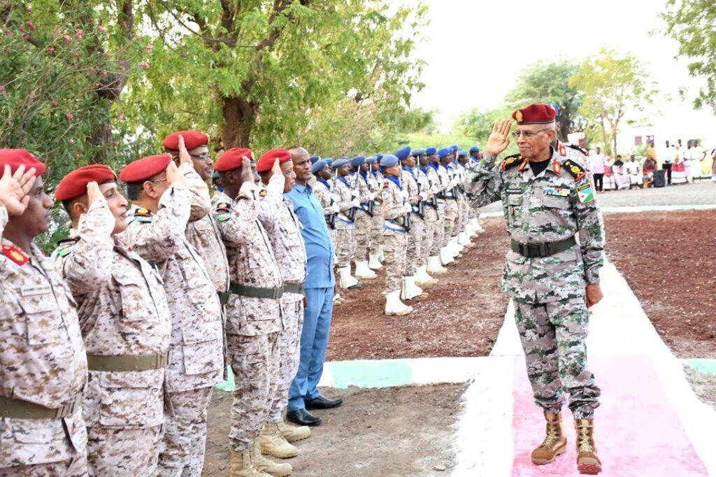 À Holl-Holl, les abords de l’École militaire ‘‘Président Hassan Gouled Aptidon’’ vibraient le dimanche 28 septembre dernier, d’une atmosphère particulière. Les bruits cadencés des bottes résonnaient sur le sol, les uniformes impeccablement repassés scintillaient sous le soleil levant, et l’air chargé de solennité traduisait la portée historique du moment. C’est dans ce décor que le Général de corps d’Armée Zakaria Cheikh Ibrahim, Chef d’Etat-major Général des Armées (CEMGA), fit son entrée, accueilli par le lieutenant-colonel Eleyeh Abdi Omar, commandant de l’école, entouré de hauts gradés du protocole. Son passage devant le piquet d’honneur, aligné avec une rigueur exemplaire, donna immédiatement le ton à cette cérémonie qui s’ouvrit d’emblée par une présentation détaillée de la nouvelle école, exposant ses missions, son organisation et ses ambitions. L’établissement ne se contente pas de former des soldats; il vise à façonner des sous-officiers, véritables cadres intermédiaires de l’armée, appelés à constituer l’épine dorsale des unités opérationnelles.