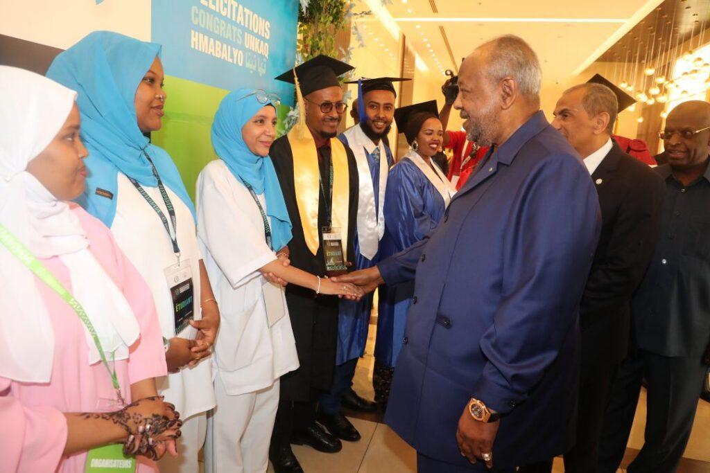 Africa-Press – Djibouti. Dans un contexte de progrès et d’excellence académique, le Président de la République, M. Ismail Omar Guelleh, a prononcé un discours jeudi dernier à Ayla Hotel à l’occasion de la remise des premiers masters en Sciences de la Santé. Rappelant l’histoire récente de l’Institut Supérieur des Sciences de la Santé (ISSS), il a mis en lumière le parcours remarquable de l’institut depuis la sortie de ses premiers licenciés en 2021 jusqu’à l’avènement de cette première promotion de master. Le Chef de l’État a souligné l’importance stratégique de ces formations de haut niveau pour le renforcement du système de santé national, tout en félicitant les lauréats pour leur réussite, symbole de l’engagement collectif de l’État, des enseignants et des partenaires internationaux dans le développement d’une santé moderne, performante et accessible à tous.