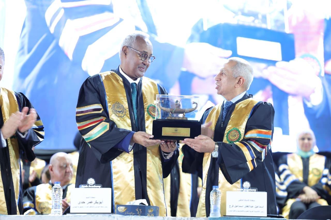 Africa-Press – Djibouti. Le président de l’Autorité des ports et zones franches, Aboubaker Omar Hadi, accompagné de l’ambassadeur djiboutien en Egypte, Ahmed Ali Barreh, a pris part à la cérémonie de remise des diplômes de la promotion 2025 de l’Académie arabe des sciences, de la technologie et du transport maritime.
