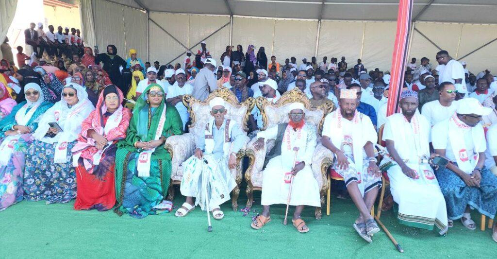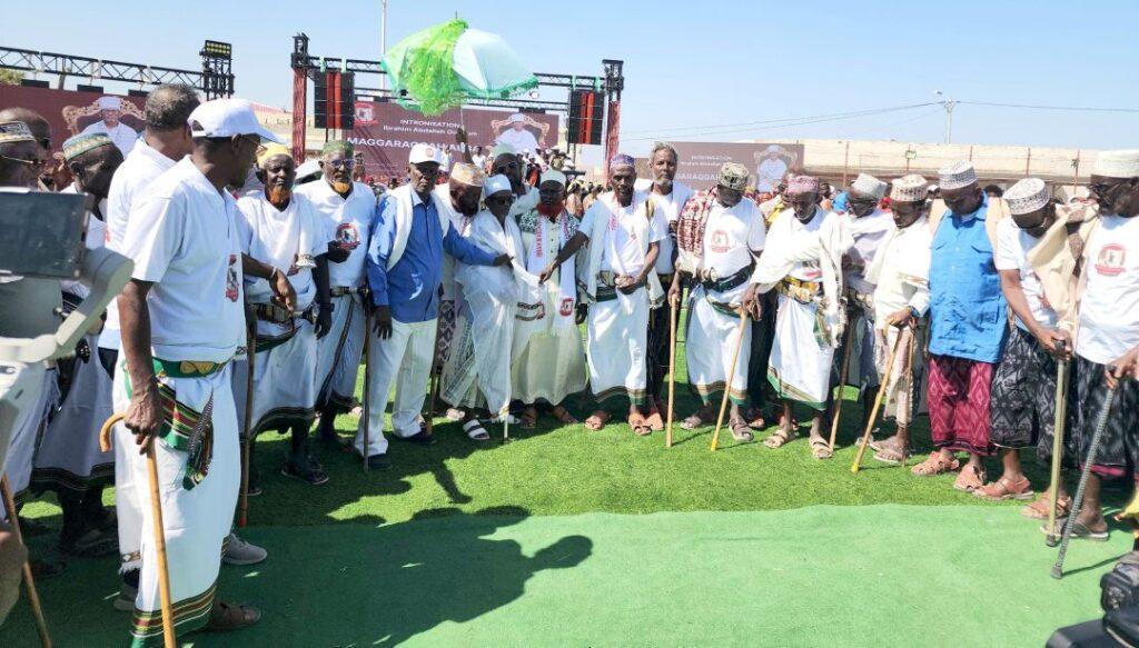 Ensuite, les chefs coutumiers de différentes communautés résidant sur cette partie du territoire se sont succédés à la tribune pour prêter allégeance au nouveau chef, soulignant ainsi la légitimité de son pouvoir hérité de ses ancêtres, tout en mettant l’accent sur les contributions des anciens détenteurs du titre de « Maggaraqqah Abba » dans le processus de préservation de la paix et de cohabitation entre les différentes communautés. Tel fut le destin du charismatique Oudoum Hamadou Abdallah, mais également de son neveu, feu Barkat Gourad Hamadou, ancien Premier ministre, dont l’engagement fut décisif dans le processus de paix et de réconciliation entre le FRUD et le gouvernement en 1994, aux côtés du président de la république Ismael Omar Guelleh.”