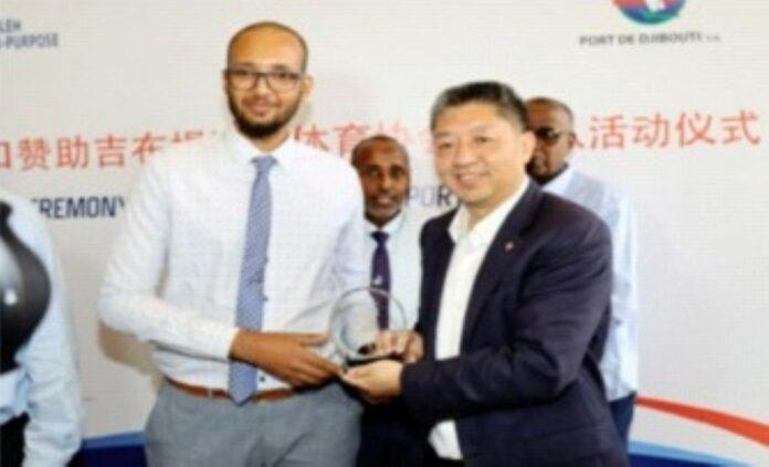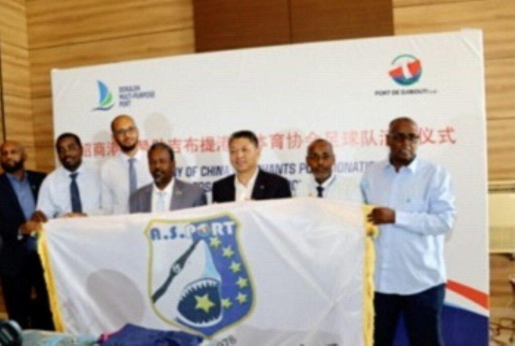 Africa-Press – Djibouti. Une importante cérémonie de remise de lots de matériels et d’équipements sportifs au bénéfice de l’AS Port a été organisée à DMP le 20 juin 2023 en présence de M. Djama Ibrahim Darar, Directeur général de PDSA/DMP, de M. XU Song, Directeur Général du China Merchant Port Group, du Président de la Fédération de Football, Souleiman Waberi Hared, de M. Iltireh Président de l’AS Port et d’autres invités distingués.