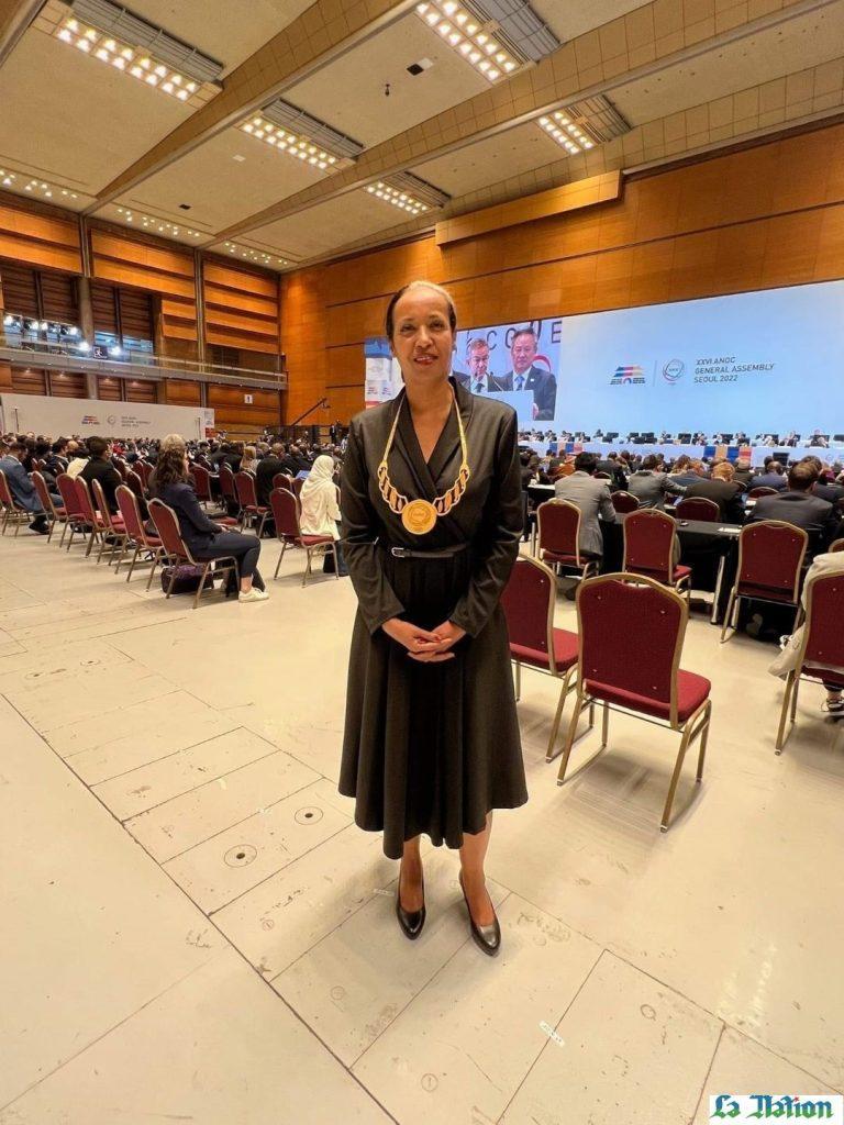 Africa-Press – Djibouti. Mercredi 19 octobre 2022 à Séoul, Mme Aicha Garad Ali, Présidente du Comité National Olympique et Sportif Djiboutien et Membre du CIO, vice-présidente de la World Taekwondo, a reçu la prestigieuse distinction du mouvement olympique international de l’Ordre du mérite de l’Association des Comités Nationaux Olympiques (ACNO), qui regroupe plus de 206 pays lui ayant été octroyé lors de l’Assemblée Générale de l’Association des Comités Nationaux Olympiques, pour service rendu au développement du sport national et international. Il faut noter que la distinction lui a été remise par le Président du Comité International Olympique Mer Thomas Bach.