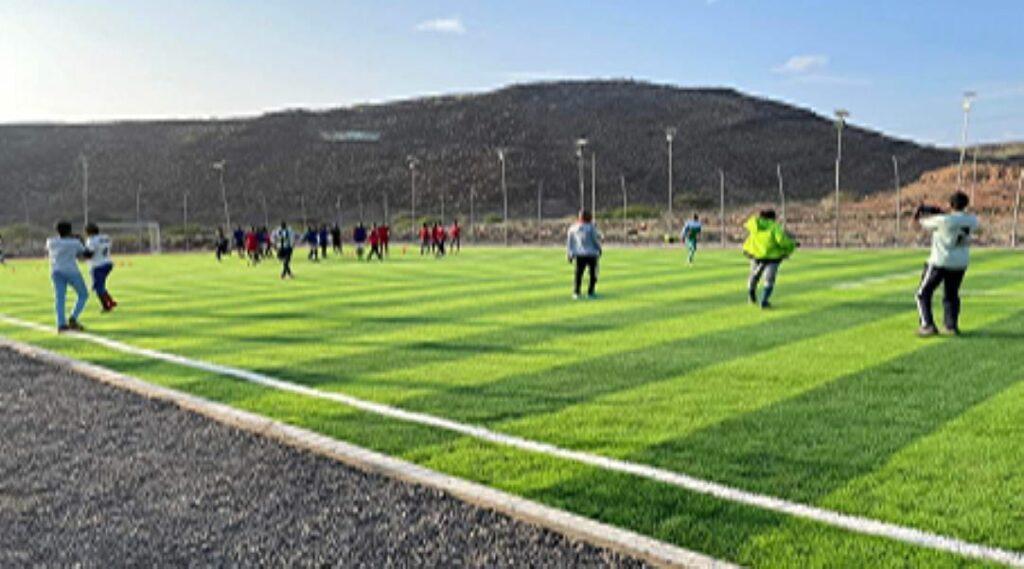 Africa-Press – Djibouti. Ce samedi 28 octobre 2023, un souffle nouveau de passion pour le football embrase la ville de Dikhil avec l’inauguration du tout premier terrain synthétique de foot. Cette installation, dotée d’une pelouse synthétique de qualité supérieure et entourée d’un grillage impressionnant, jalonné de poteaux solaires scintillants, incarne le rêve de la jeunesse dikhiloise devenu réalité.