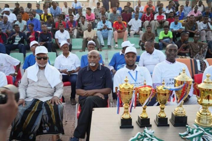 Africa-Press – Djibouti. C’est dans une ambiance électrique, que s’est clôturée le mercredi soir passé la 5e édition du tournoi footballistique dédié à la paix et à l’amitié inter-commune. Organisée par le CELLUDD (Collectif des élus locaux et Leaders Unis pour le Développement Durable), en partenariat avec le Secrétariat d’État chargé des Sports, cette compétition sportive, symbole de fraternité et de vivre-ensemble, a livré son verdict: l’équipe de PK12 s’est imposé 1-0 face à celle de PK13.
