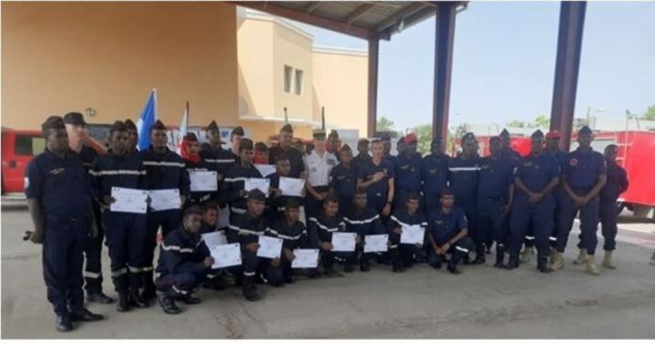 Africa-Press – Djibouti. Le directeur général de la Protection civile, le colonel Mahamoud Moussa Mahamoud, a présidé jeudi dernier la cérémonie de clôture d’une formation en faveur d’une vingtaine de nos sapeurs-pompiers.Cette cérémonie a vu la présence de l’attaché de sécurité auprès de l’ambassade de France à Djibouti, M. Laurent le Goff.