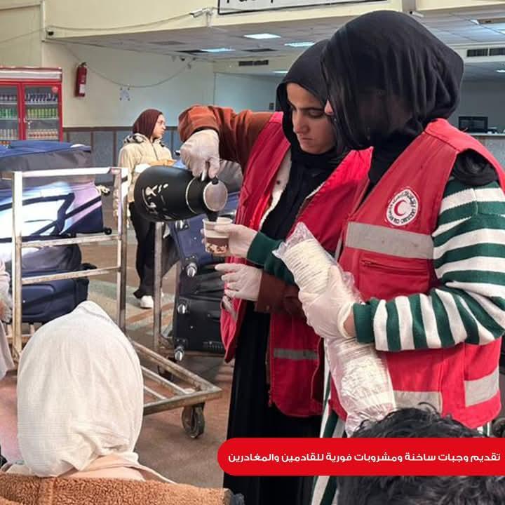 ويُقدم الهلال الأحمر المصري خدماته الإغاثية، والدعم النفسي للأطفال، ومرافقة المرضى والجرحى وكبار السن، داخل مركزي الخدمات الإنسانية بصالتي الوصول والمغادرة بمعبر رفح البري، فضلًا عن خدمات إعادة الروابط العائلية، وتوزيع وجبات ساخنة، توفير الملابس الثقيلة ومستلزمات العناية الشخصية، وتوزيع «حقيبة العودة» على العائدين إلى القطاع.