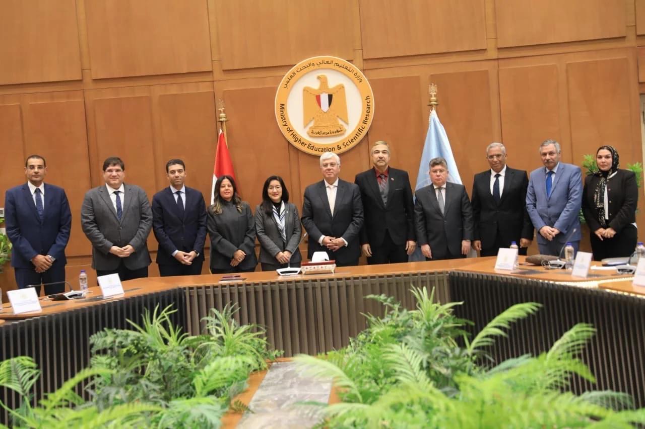 وأشار السفير خالد أنيس، إلى أهمية تنفيذ الاتفاق الذي يستهدف تنفيذ استراتيجية فعالة ومرونة تتضمن أنشطة غير تقليدية لنقل التكنولوجيا، وتعميق التصنيع، وتعزيز دور التحالفات التكنولوجية بين مؤسسات التعليم العالي والصناعة والحكومة والمستثمرين ورواد الأعمال في التنمية المستدامة، وتأسيس وتدبير احتياجات مئات الشركات المنبثقة عن مخرجات البحث العلمي في جميع المحافظات، على مستوى الدولة المصرية، والترويج للتحول الرقمي واعتماد الذكاء الاصطناعي في المؤسسات الأكاديمية، مؤكدًا أهمية دور وزارة الخارجية في دعم تنفيذ هذا الاتفاق لتحقيق النتائج المرجوة منه.