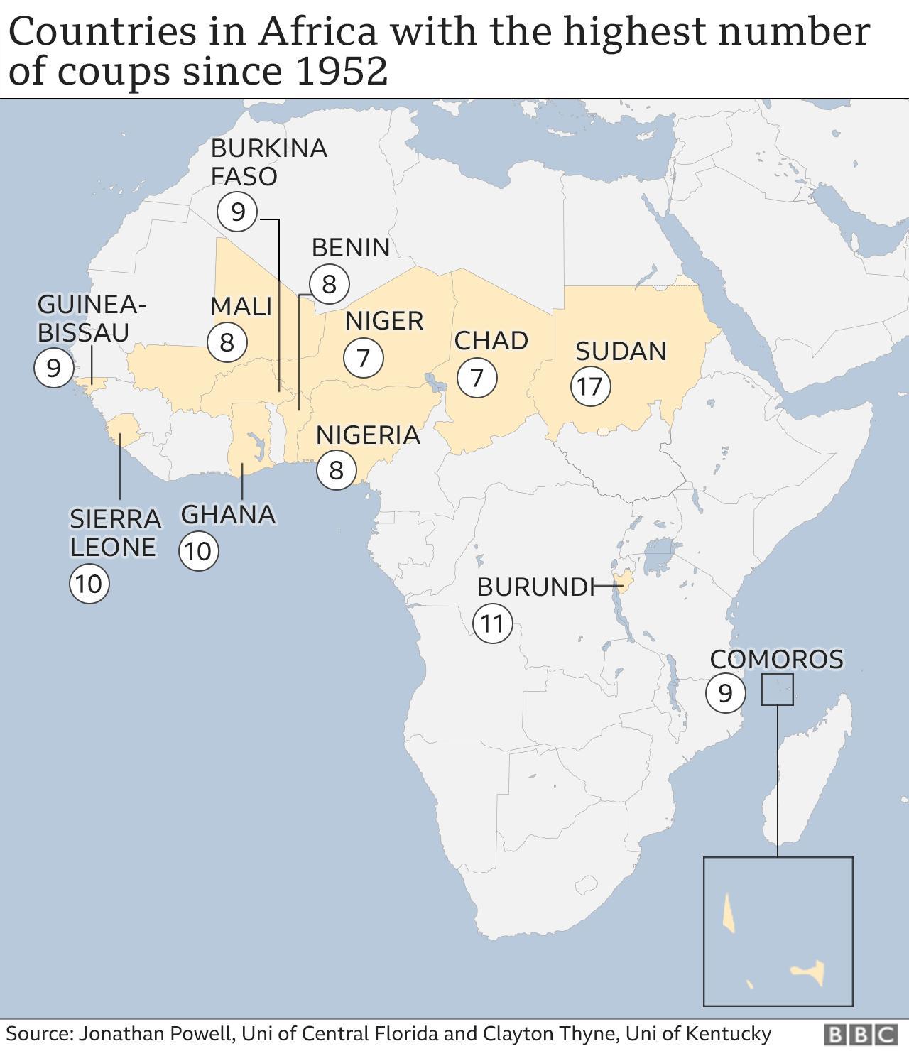 لطالما كانت الانقلابات ملمحًا أساسيًّا في الحياة السياسية الإفريقية منذ ستينات القرن الماضي التي شهدت نشوء الدول المستقلة في القارة السمراء، فبين عامي 1970 و1989 كانت هناك 99 محاولة انقلاب ناجحة أو فاشلة في جميع أنحاء القارة، في حين وصل عدد الانقلابات الناجحة بين عامي 1956 و2001 إلى 80 انقلابًا(1).
