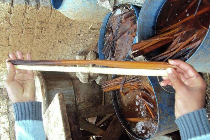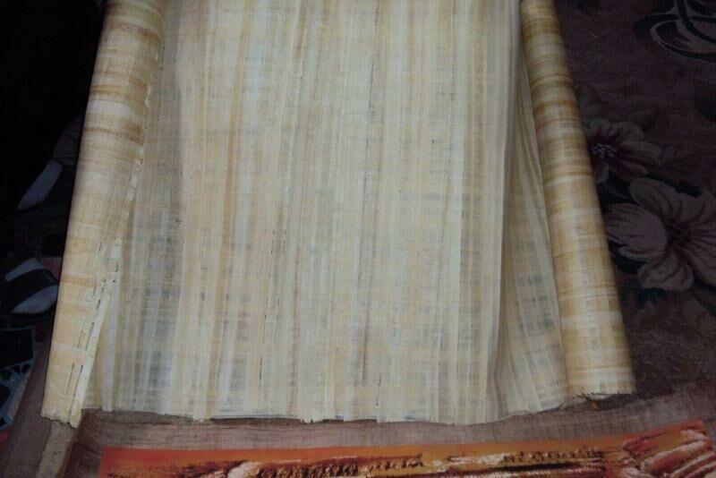 بعد حصاد البردي وقصه بالأطوال المطلوبة، يوضع كل مقاس في برميل أو حوض كبير ويضاف إليه مادة “البوتاس” ويترك لنحو 6 أو 8 ساعات، ثم يوضع بعد ذلك في مادة الكلور ليأخذ اللون الأبيض نظرا لتحوله للون الداكن بعد وضعه في “البوتاس”، ويلف بعد ذلك في القماش حتى يجف من الماء، ويصبح جاهزا للرص قبل عملية “الكبس”.