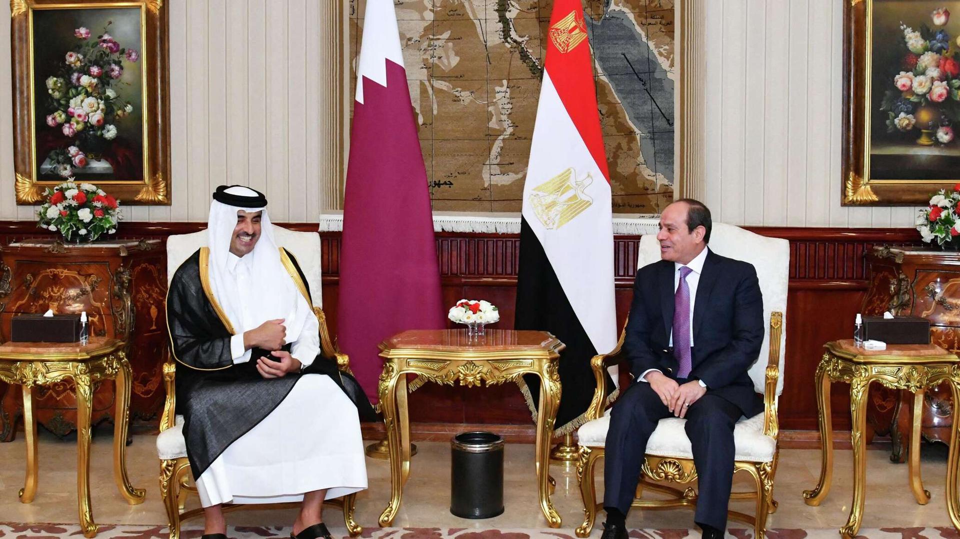 واستقبل الرئيس المصري عبد الفتاح السيسي، مساء الجمعة، أمير قطر الشيخ تميم بن حمد، الذي يزور القاهرة لأول مرة منذ سنوات. وقال المتحدث الرسمي لرئاسة الجمهورية المصرية بسام راضي، على فيسبوك: ” الرئيس عبدالفتاح السيسي يستقبل بمطار القاهرة سمو الأمير تميم بن حمد آل ثاني، أمير دولة قطر، الذي يحل ضيفاً كريماً على مصر في زيارة رسمية تستغرق يومين”.