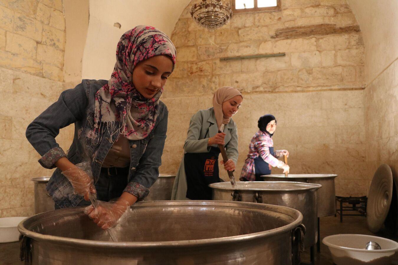 أفريقيا برس – مصر. من خان الوزير، أقدم خانات حلب القديمة، تحلّق عشرات الشبان والشابات حول قدور الطبخ، محاطين بأكداس الأطعمة التي بجهودهم تجد طريقها يومياً إلى بيوت الصائمين لترسم البسمة على وجوههم التي أنهكها الفقر.