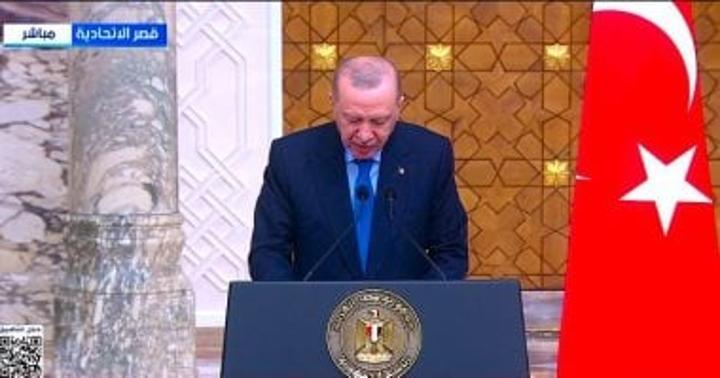 وقال أردوغان، خلال مؤتمر صحفي مشترك مع الرئيس عبدالفتاح السيسي بالقاهرة، إن بلاده تعمل بالتنسيق مع مصر على مبادرات تهدف إلى إتاحة فرص السلام في غزة، مع الاستعداد لتقديم كل مساهمة ممكنة في جهود إعادة الإعمار.