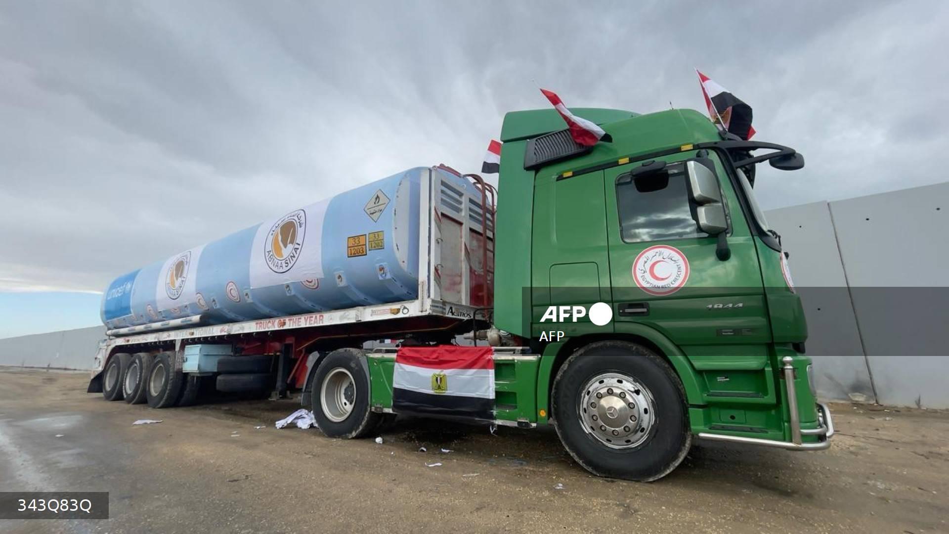 ونقلت وكالة أنباء الشرق الأوسط المصرية الرسمية عن مصدر مسؤول في معبر رفح إعلانه دخول أول شاحنة وقود إلى قطاع غزة منذ بدء الحرب على القطاع.