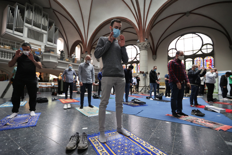 وأعيد فتح أماكن العبادة في ألمانيا في 4 مايو/أيار الجاري، بعد إغلاقها لأسابيع بسبب فيروس كورونا، لكن يجب على المصلين الحفاظ على مسافة لا تقل عن 1.5 متر.