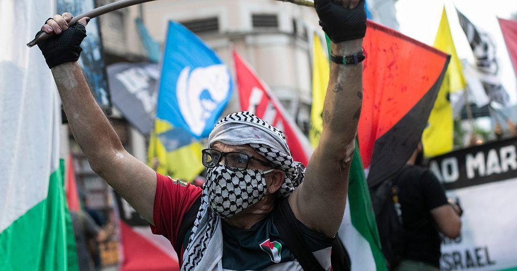 In Rio de Janeiro, Brazil, students and social movements marched through the streets Thursday. Chants demanded the release of 11 Brazilian nationals detained and called for cutting economic and diplomatic ties with Israel. Demonstrator Leandro Lanfredi urged tougher action, saying the flotilla’s volunteers only sought to carry symbolic relief supplies.