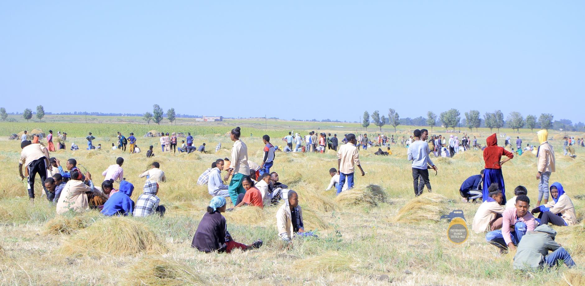 Africa-Press – Eritrea. Crops belonging to families of martyrs and disadvantaged citizens have been harvested in Adi-Quala sub-zone in collaboration with education and agriculture offices, students, Government workers, as well as members of the Defense Forces.