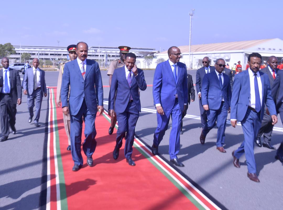 Upon arrival at the Jomo Kenyatta International Airport, President Isaias was accorded a warm welcome by Dr. Alfred Nganga Mutua, Minister of Foreign and Diaspora Affairs, and Mr. Aden Bare Duale, Minister of Defense of Kenya as well as Mr. Beyene Russom, Eritrea’s Ambassador to Kenya.