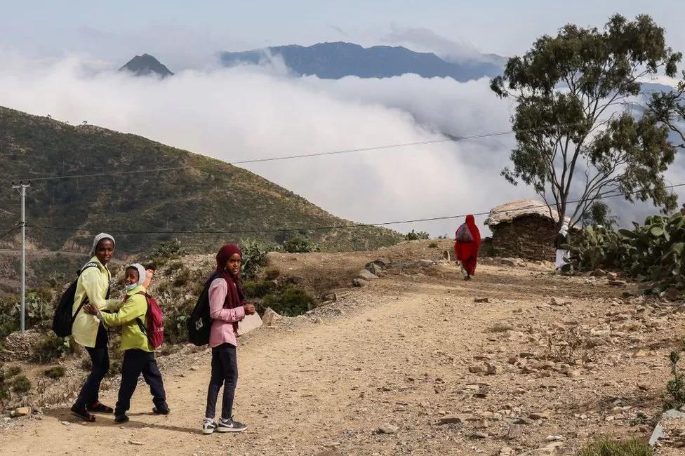 Pupils make their way to school on Friday in Eritrea’s Durfo valley, which is just outside the capital, Asmara.