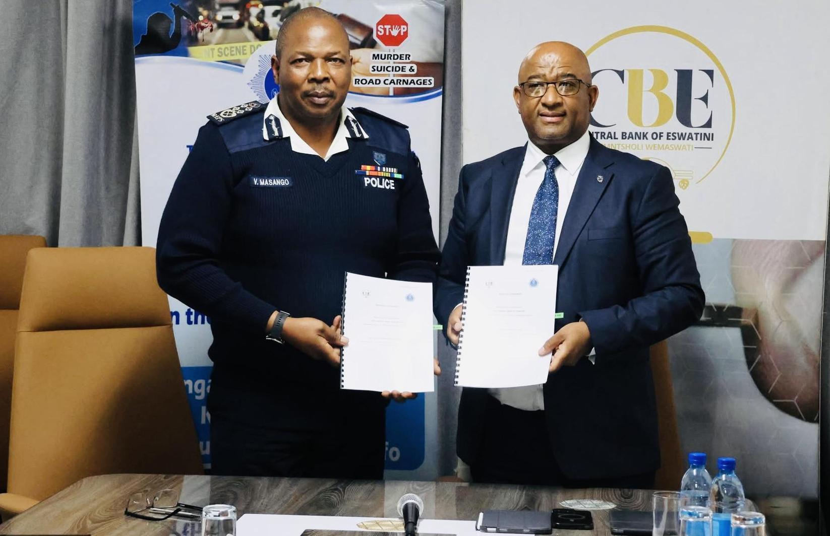 Africa-Press – Eswatini. Dr. Phil Mnisi, the Governor of the Central Bank of Eswatini(CBE) has on behalf of the bank, signed a Memorandum of Understanding(MoU) with the Royal Eswatini Police Service(REPS) committing to strengthening institutional collaboration, enhancing security and safeguarding the integrity of both entities.