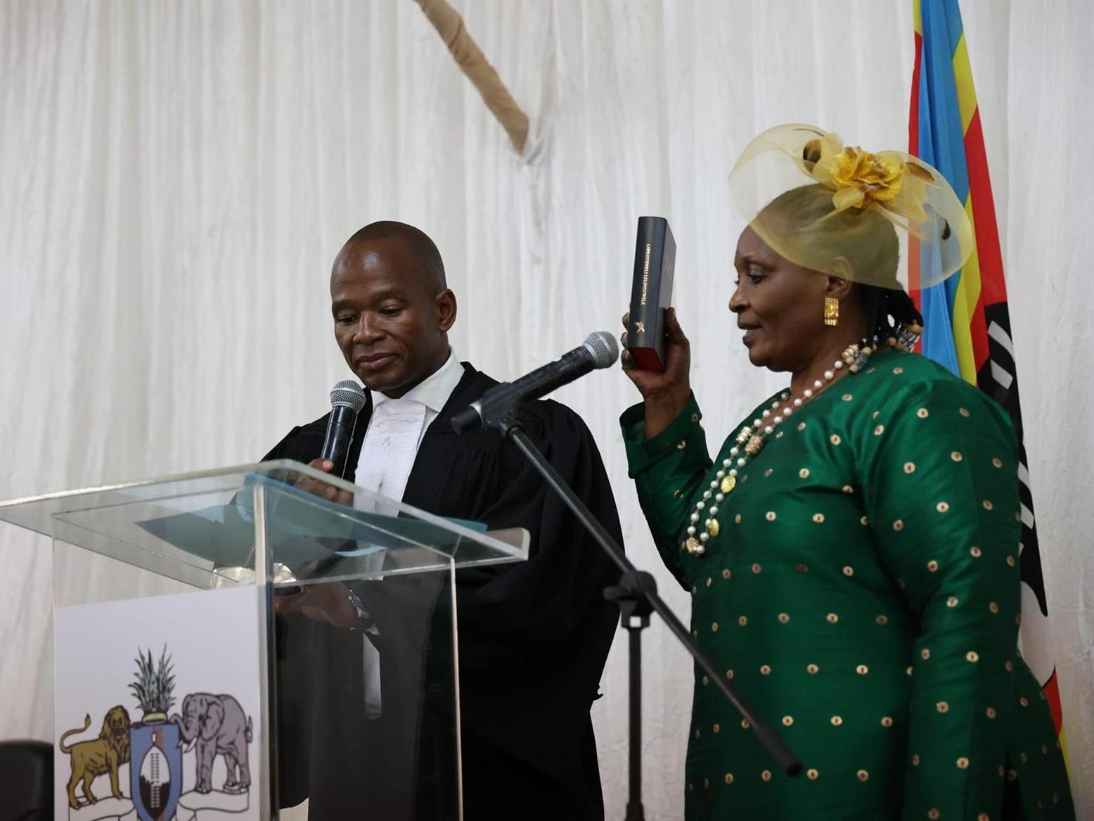 Africa-Press – Eswatini. Deputy Prime Minister Thuli Dladla being sworn-in by Attorney General Sifiso Khumalo.