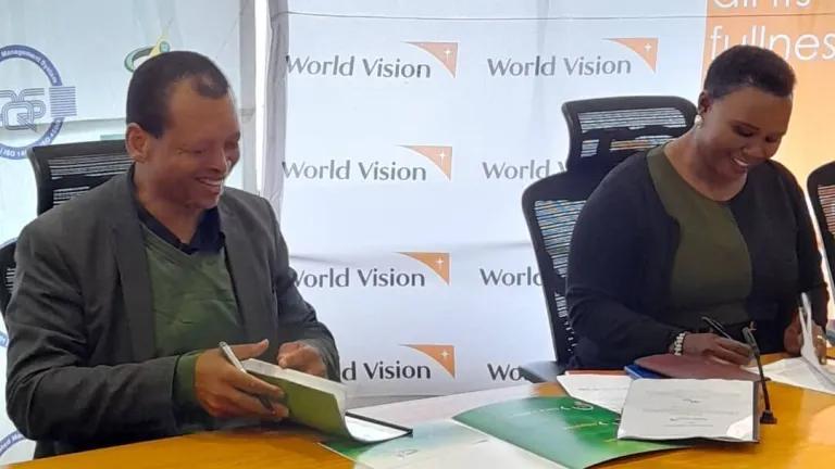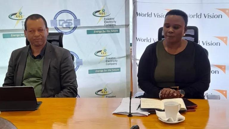 EEC Managing Director Ernest Mkhonta (L) National Director World Vision Tinah Mukunda (R).
