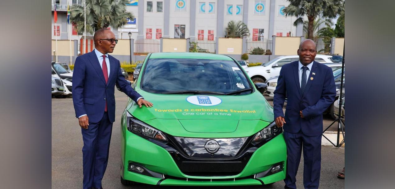 Prime Minister Cleopas Sipco Dlamini inside the Nissan LEAF.