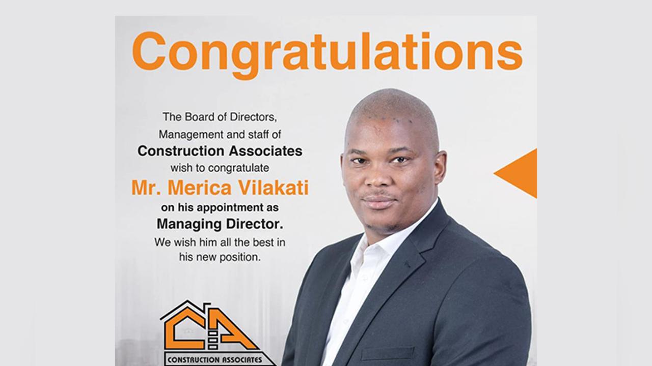“The Board of Directors, management and staff of Construction Associates wish to congratulate Mr. Merica Vilakati on his appointment as Managing Director. We wish in all the best in his new position,” read the statement on Vilakati’s appointment.