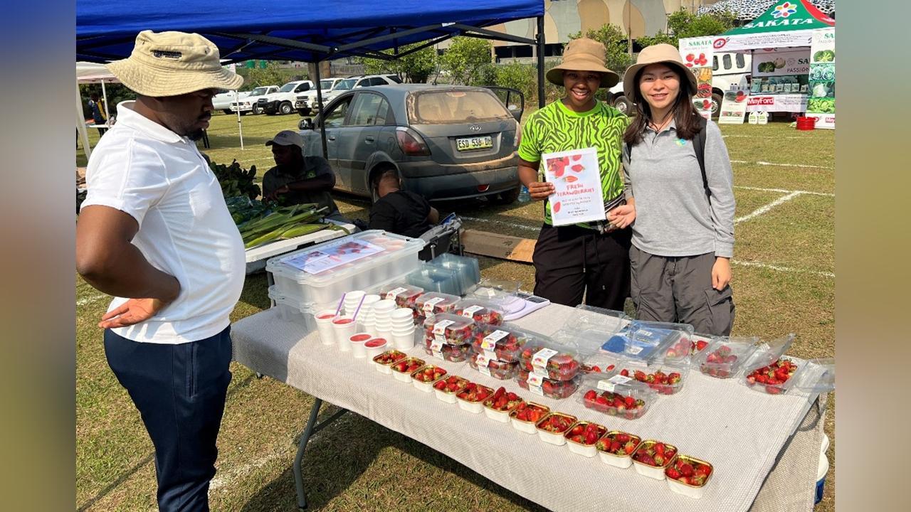 At the event, Ms. Makhsie and Mr. Maseko proudly showcased their bountiful harvests at the market. Ms. Makhsie’s guavas, ripe and succulent, and Mr. Maseko’s plump strawberries. Farmers from across the region participated.