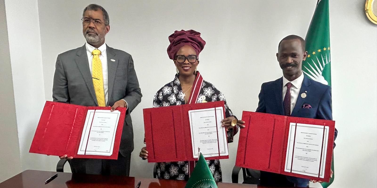 The MoU was signed by AU Commissioner for Infrastructure and Energy Lerato Mataboge, AFCONE chairperson Gaspard Liyoko Mboyo and OECD NEA director-general William Magwood IV.