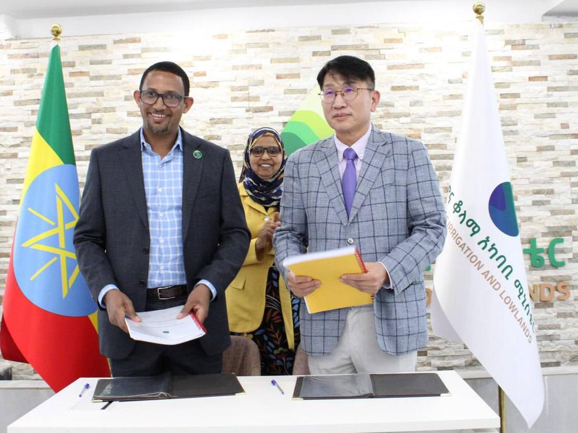 State Minister of Irrigation and Lowlands, Birhanu Lenjiso, and David DoHyun‚ Kim, Hansol Division leader of South Korea’s Hansol Paper Co.Ltd signed the agreement.
