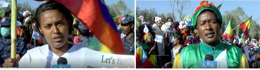 “Why we came here is to say no more foreign interference and condemn the violence against women and children and atrocities committed by the terrorist group [TPLF].”