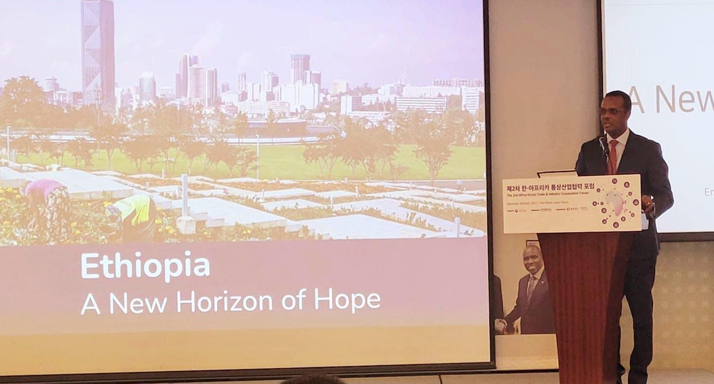Ethiopia’s ambassador to Korea, Dessie Dalkie, presented the investment potentials of Ethiopia and Ethio-Korea future potential cooperation areas at the forum.