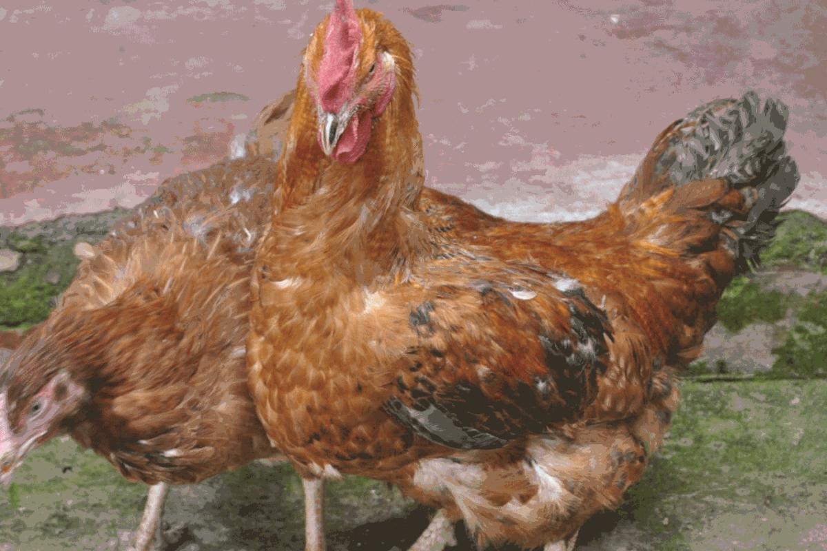 They can be grouped into endoparasites (internal) and ectoparasites (external) such as tampans, lice, mites, fleas, ticks and worms. Ectoparasites are associated with scratching and scales on the legs while endoparasites are associated with worms in dropping, redness of the stool, greenish diarrehoea and mouth discharge.