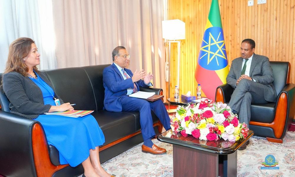Africa-Press – Ethiopia. State Minister of Foreign Affairs of Ethiopia Ambassador Mesganu Arga, held discussions with the outgoing UNDP Representative ,Turhan Saleh at his office today.