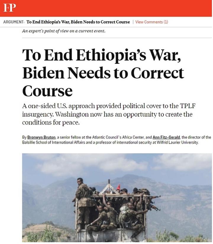 Africa-Press – Ethiopia. s Ababa December 29/2021/ENA/ The Biden Administration needs to correct course to end Ethiopia’s war, Senior Fellow Bronwyn Bruton and International Security Professor Ann Fitz-Gerald wrote on “Foreign Policy”.