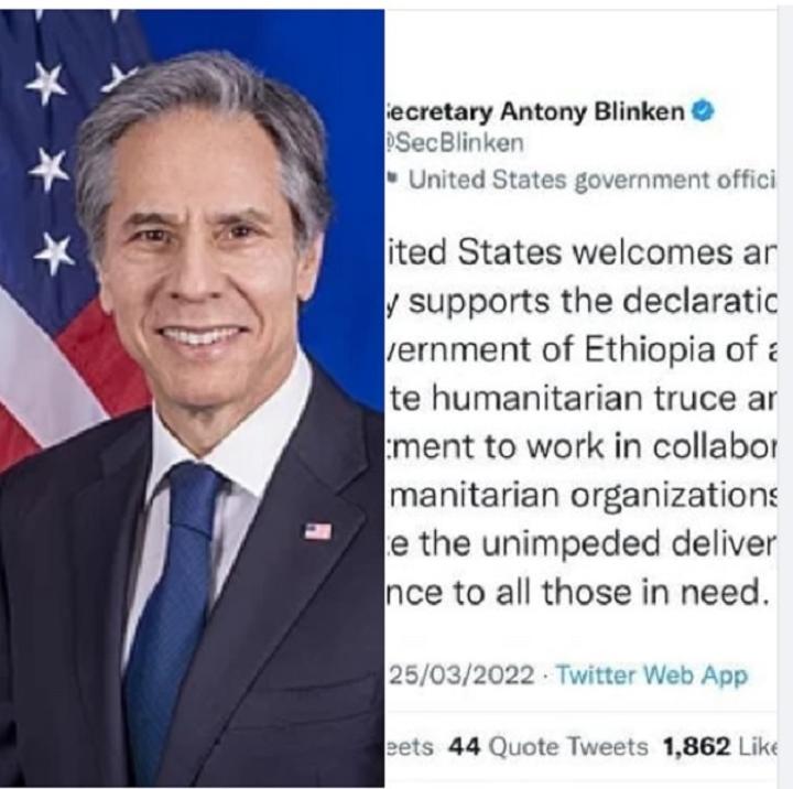 US Department of State, Secretary Antony Blinken twitted that, “the United States welcomes and strongly supports the declaration by the Government of Ethiopia of an indefinite humanitarian truce and its commitment to work in collaboration with humanitarian organizations to expedite the unimpeded delivery of assistance to all those in need.”