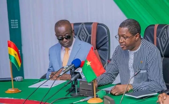 Africa-Press. Burkina Faso et Ghana ont convenu de renforcer leur coopération en matière de sécurité lors d’une réunion à Ouagadougou. Le Premier ministre burkinabé, Rimtalba Jean Emmanuel Ouédraogo, et une délégation du Ghana, dirigée par son ministre des Affaires étrangères, Samuel Okudzeto Ablakwa, ont discuté de l’échange d’informations de renseignement entre les deux pays lors de la treizième session de la Commission mixte de coopération, selon un communiqué officiel.