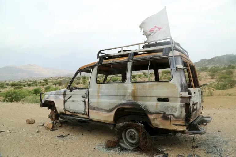Le média Dimtsi Weyane, proche du Front de libération du peuple du Tigré, a publié sur Facebook des photos qu’il a présentées comme montrant les camions endommagés par les frappes. Selon lui, ils transportaient de la nourriture et du matériel de cuisine.