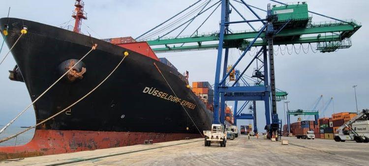 « Düsseldorf Express ». Long de 294 mètres et 32,25 mètres de large, il est le plus long navire qui escale au Gabon depuis la mise en service du Port Commercial d’Owendo en 1974.