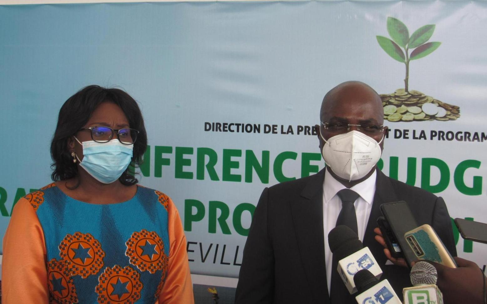 Africa-Press – Gabon. Le Ministre du Commerce Yves Fernand Manfoumbi et sa collègue du Bugdet et des Compte publics, Edith Ekiri Mounombi épse Oyouomi après les conférences budgétaires le 29 juillet à Libreville © Gabonactu.com
