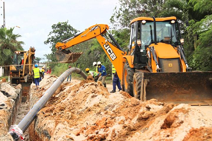 Quatre marchés sont identifiés dans ce programme ; et actuellement, les travaux de réfection, réparation des fuites et de renouvellement des réseaux d’eau dans les bâtiments administratifs sont réalisés à plus de 92%. Ceux liés au renforcement et à l’extension du réseau de distribution d’eau potable dans les communes de Libreville et d’Akanda sont à 61%, tandis que le renouvellement des réseaux de distribution d’eau potable dans les communes d’Owendo et de Ntoum est exécuté à 45 %. Enfin, le renouvellement des réseaux de distribution d’eau potable dans les communes de Libreville, d’Owendo et de Ntoum se situe déjà à 40%.