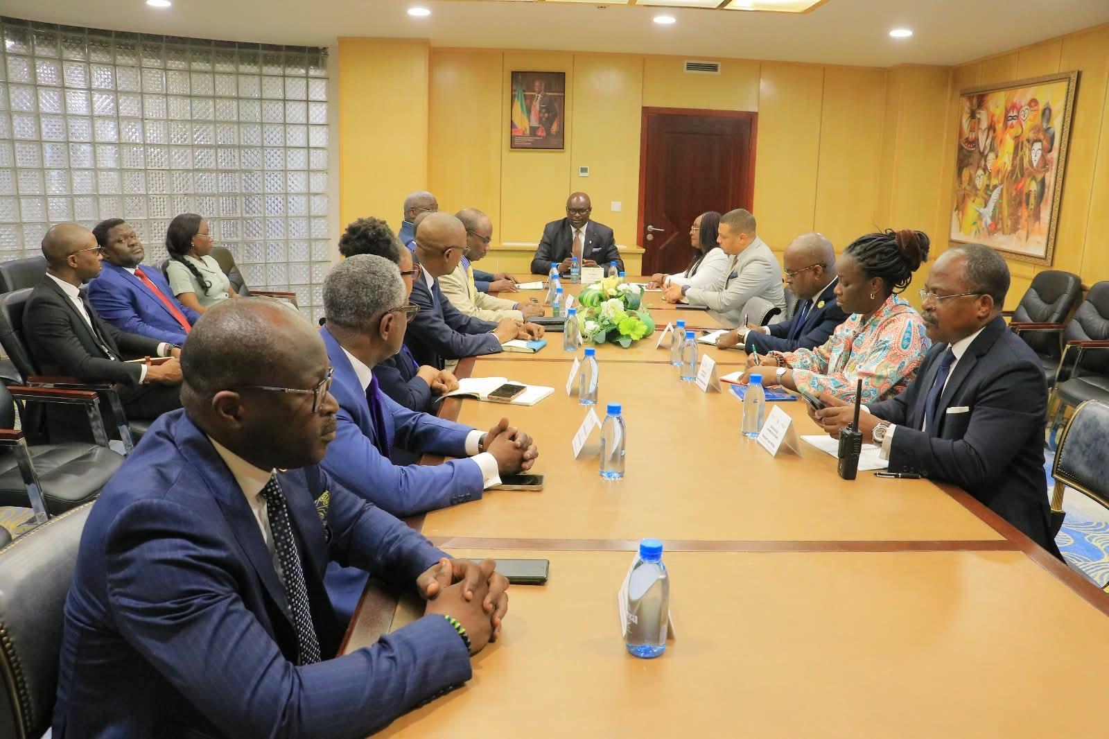 Africa-Press – Gabon. Le Conseil de l’Ordre des avocats, dirigé par le bâtonnier Raymond Obame Sima, a été reçu mardi au Palais Léon Mba par le président de l’Assemblée nationale, Michel Régis Onanga Ndiaye, et sa première vice-présidente. La délégation a plaidé pour une modernisation du cadre législatif et un renforcement de l’État de droit, à l’heure de la cinquième République.