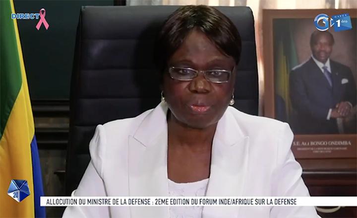 Au nombre des participants à la 2e édition du Forum du dialogue Inde/Afrique sur la défense autour de la thématique « Adapter la stratégie pour dynamiser la coopération en matière de défense et sécurité », le ministre gabonais de la Défense a prononcé une allocution diffusée le 18 octobre, sur les antennes de Gabon 1ère. S’adressant à ses pairs, ministres de la Défense, Félicité Ngoubili Ongouori a indiqué que le président Ali Bongo, avec «une vision pour une armée opérationnelle et républicaine», mène une politique de défense axée sur la sécurité nationale et régionale.