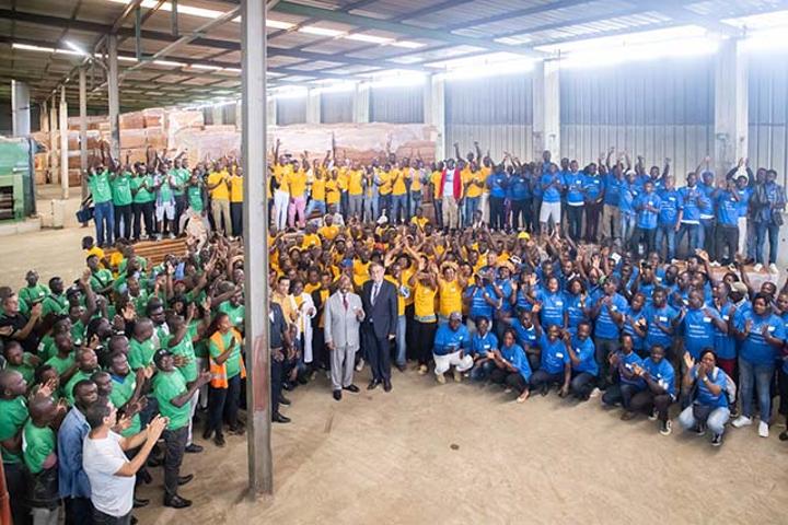 Opérationnelle depuis septembre 2021, l’usine de transformation d’huile de palme s’étend sur une superficie de 7 hectares et traite 90 tonnes de régimes de palme par heure. Elle emploie plus de 150 personnes dont 90% sont des nationaux et vient s’ajouter à celles de Mboukou et de Lambaréné inaugurées respectivement en avril 2017 et en juin 2000. Une visite de terrain cadencée, aux allures de campagne électorale ? On préfère simplement penser que c’est déjà Noël à Mouila, grâce à Ali Bongo qui offre à la commune de l’emploi, de l’eau potable et la formation.